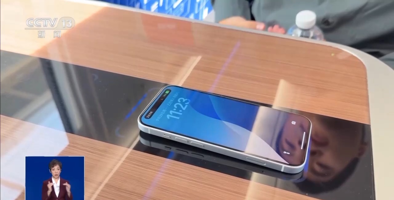 通過(guò)這塊“大型觸摸屏”,旅客既可觀看宣傳片,查看列車(chē)運(yùn)行信息,也可一鍵切換回透光模式欣賞窗外風(fēng)景。此外,座椅小桌板集成無(wú)線充電功能,并配有手機(jī)充電口。